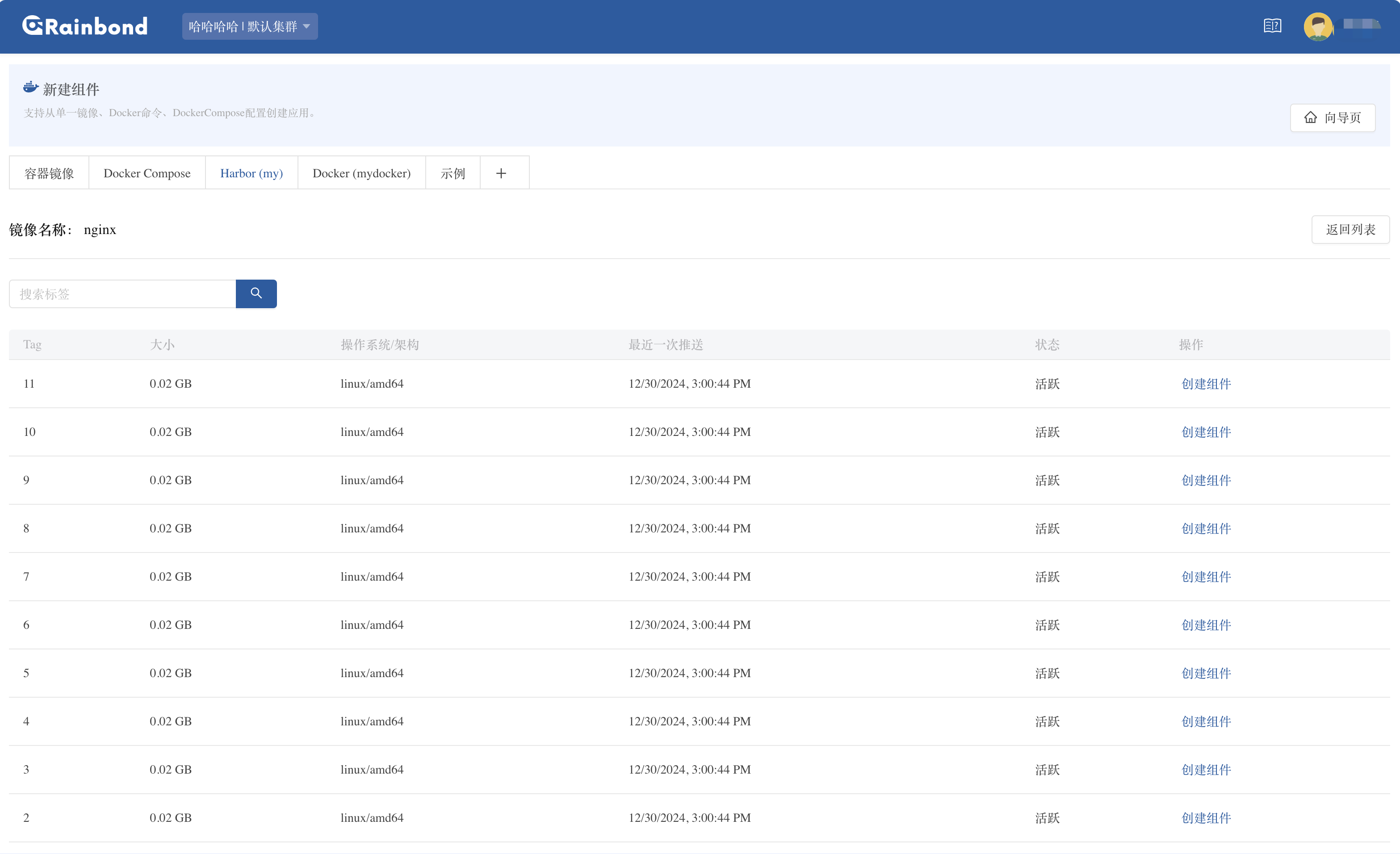 操作指南应用部署使用容 器镜像部署通过镜像仓库部署本页总览通过镜像仓库部署本文档详细介绍了如何在 Rainbond 平台对接已有镜像仓库,并基于镜像仓库中的镜像快速创建和部署。 镜像仓库对接概述 Rainbond 支持对接标准的容器镜像仓库,主要包括两种类型: Docker Registry:开源的 Docker 官方镜像仓库 Harbor:企业级的容器镜像仓库,提供更丰富的权限管理和安全特性 通过对接镜像仓库,您可以享受以下优势: 直接使用已有的镜像资源,无需重复构建 便捷的镜像版本选择和更新 统一的镜像管理,适合多环境部署 对接镜像仓库 支持的镜像仓库类型